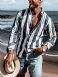 Afslappet Skjorte Til Mænd Turndown-krave Lange Ærmer Striber Dybblå Sommerskjorter